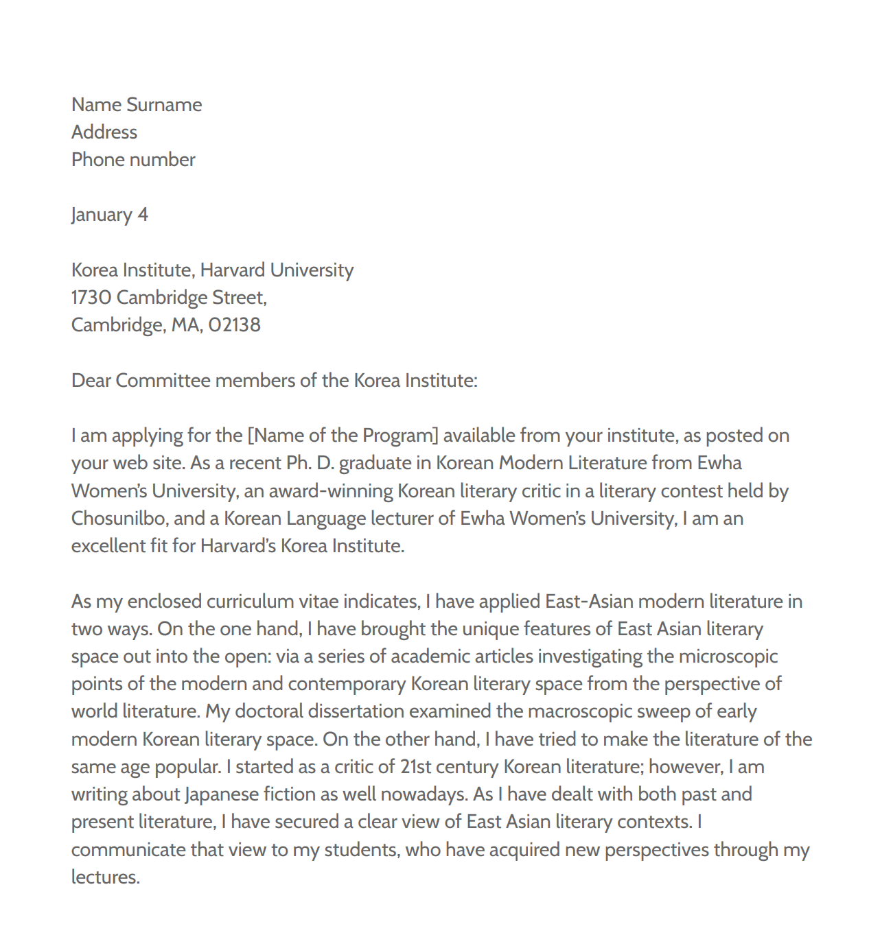 - Relevant data. The letter should not contain any extra information that is not related to the chosen program.