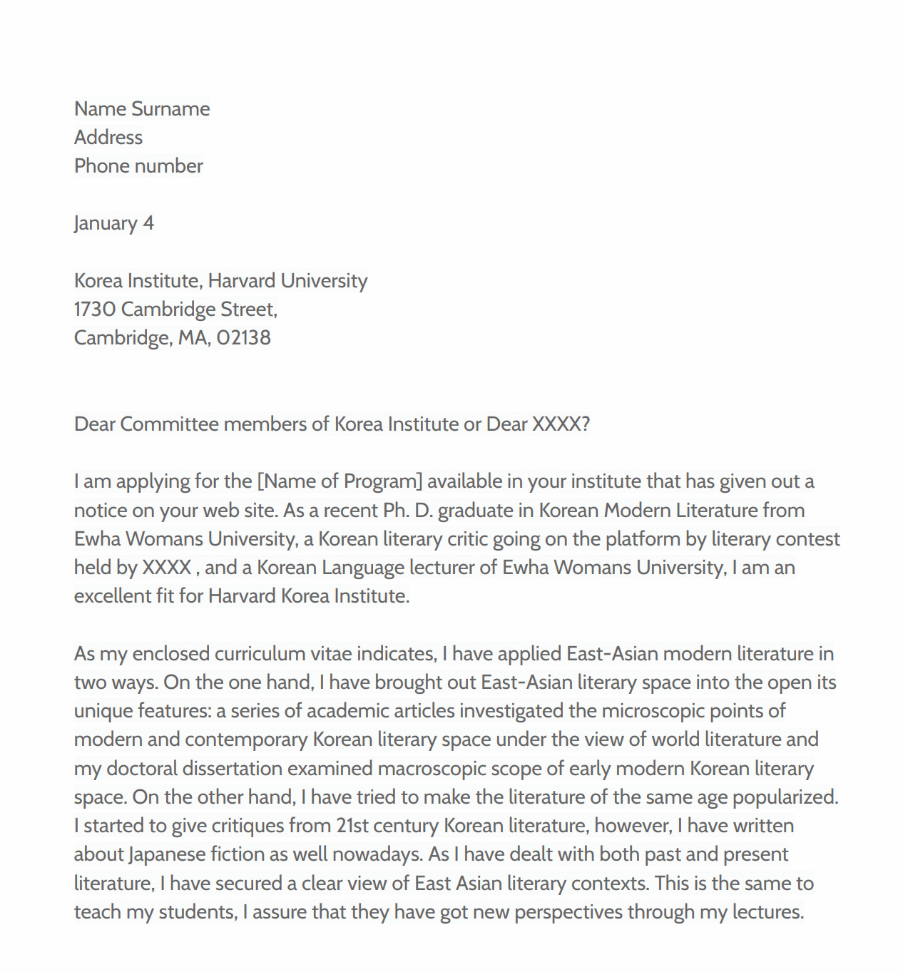 - Mistake-free text. A perfect cover letter should be free of any mistakes. Even a minor error can spoil the overall impression of the committee.