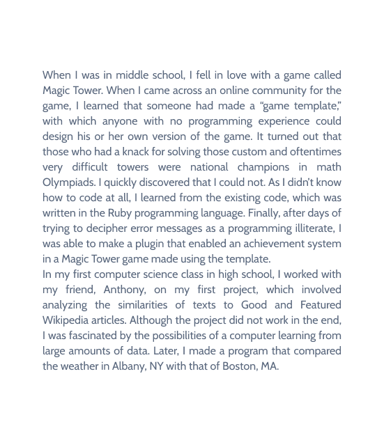 In this section, you can explore numerous great college supplemental essays along with improved versions of essays, that were edited by our experts. Register to unlock access to the essays.