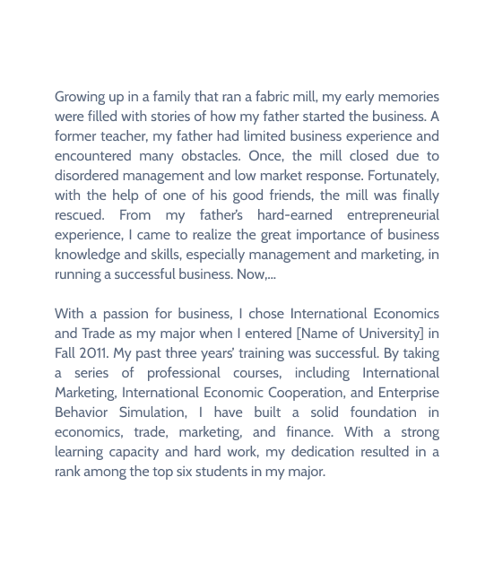 Many examples on our site are highly personalized. Doing this is especially essential since showcasing individuality goes a long way in persuading the admissions team. If a student would like to know how to customize their sample piece, they can check out any sample/ template here. Some ways of customizing a student essay to match our examples are: